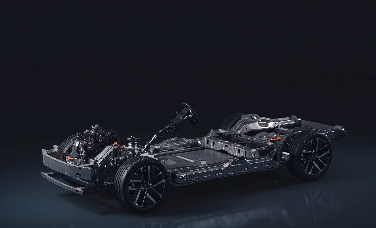 İYM hareketle mekanik bağlantı olmadan sadece jeneratörü hareket ettirir. İki elektrikli motor, ön ve arka tekerlekleri hareket ettirir.
